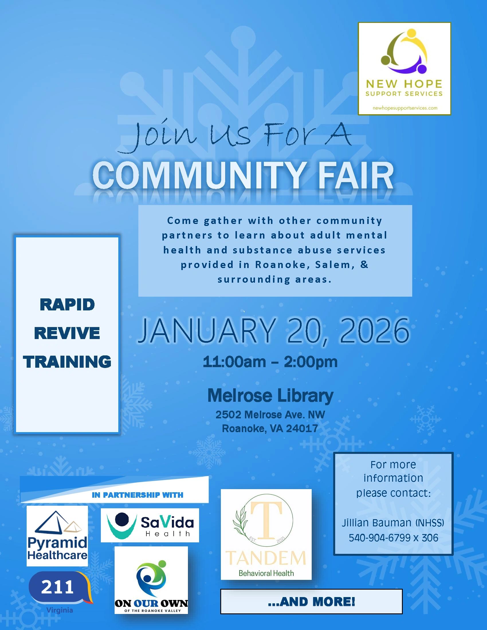 Community Fair! Mental Health & Substance Use Services - 1/20/2026. Click Here.
